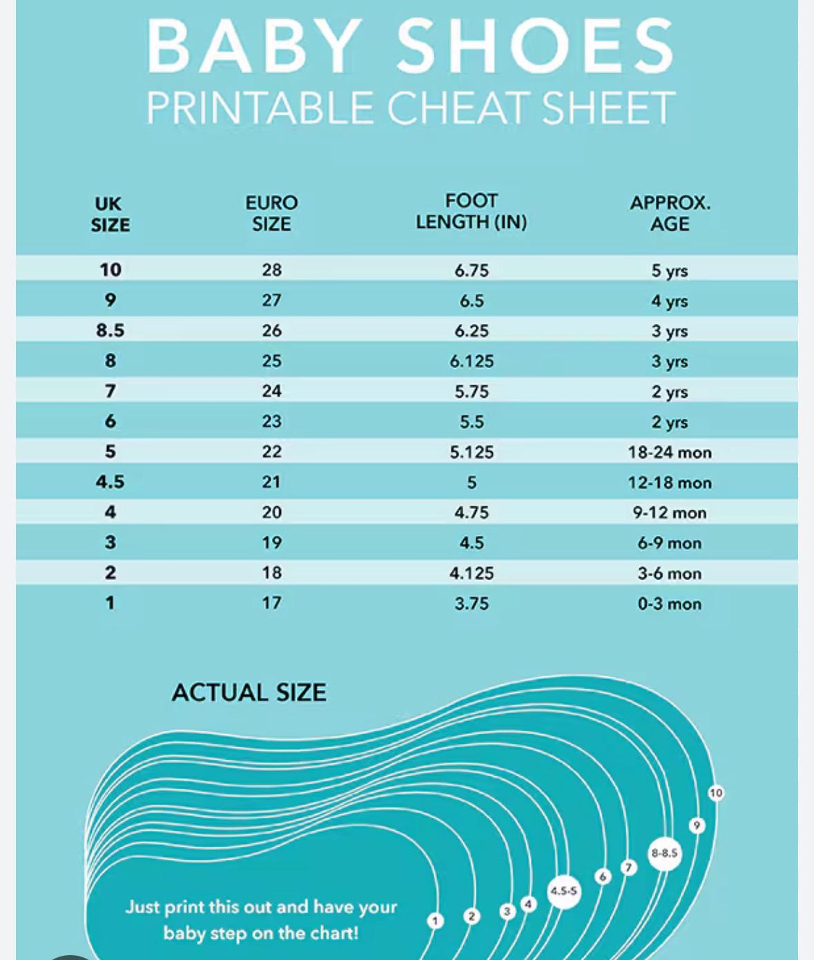 Baby Shoe Printable Cheat Sheet