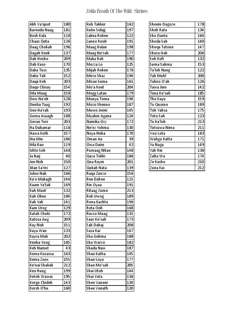 With so many shrines scattered throughout the vast and breathtaking world of Hyrule, it can be overwhelming to keep track of them all. That’s where our printable list comes in handy. Whether you’re a seasoned player looking to complete every shrine or a newcomer seeking guidance, this resource is perfect for you.