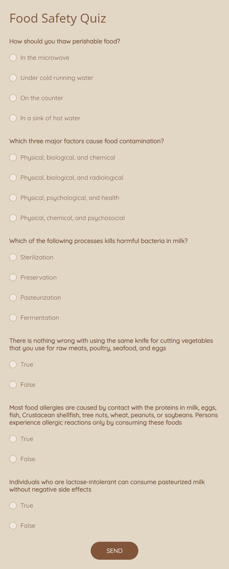 free food safety quiz template 123formbuilder