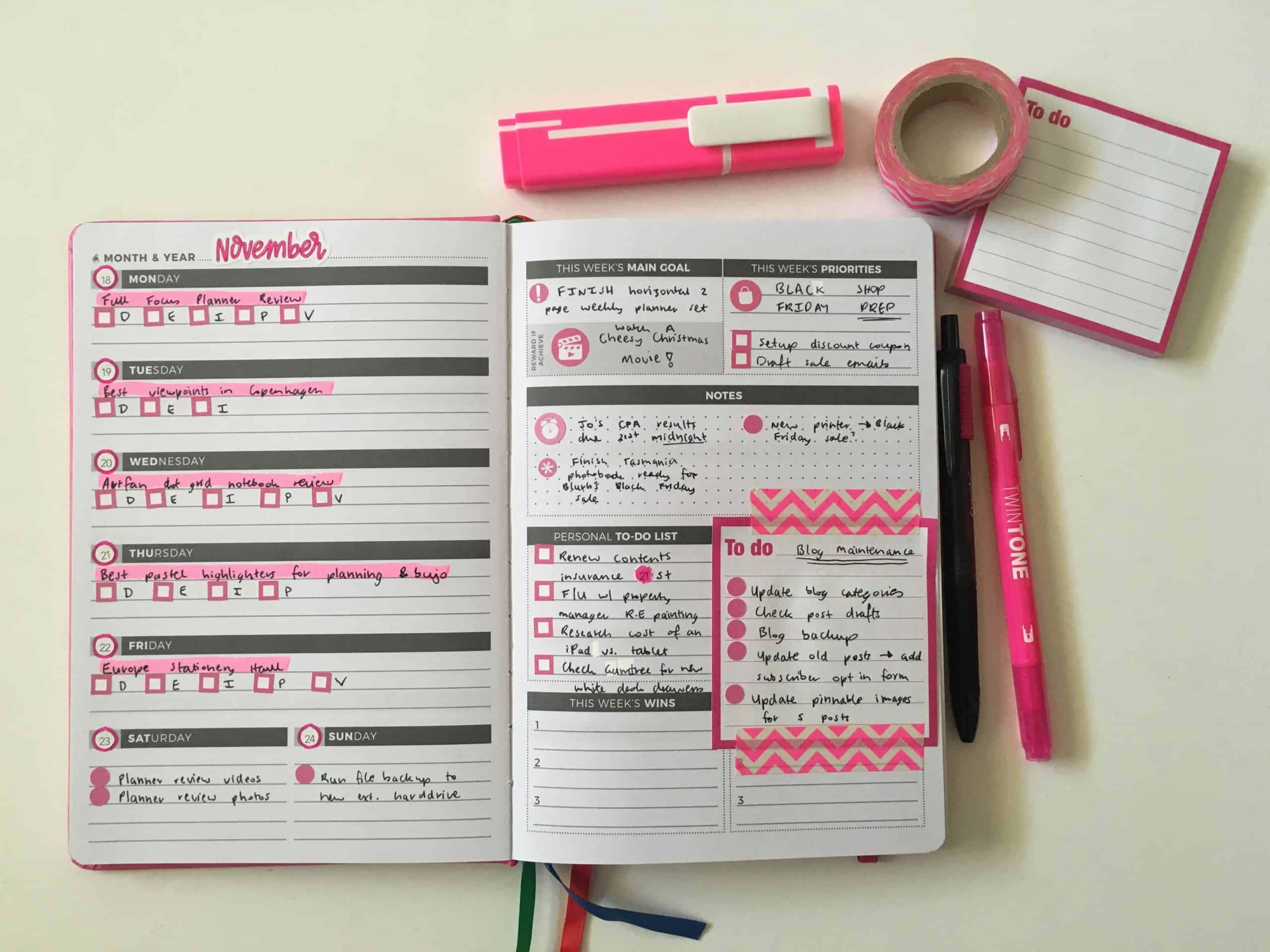 Pink amp Black Themed Spread In The Clever Fox Weekly Planner All