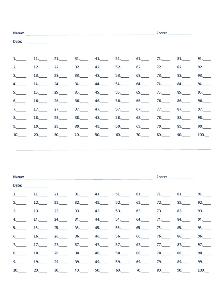 Our free printable answer sheet from 1 to 100 is designed to be clear, simple, and user-friendly. Each number is neatly laid out with plenty of space for you to write your answers, making it easy to keep track of your responses.
