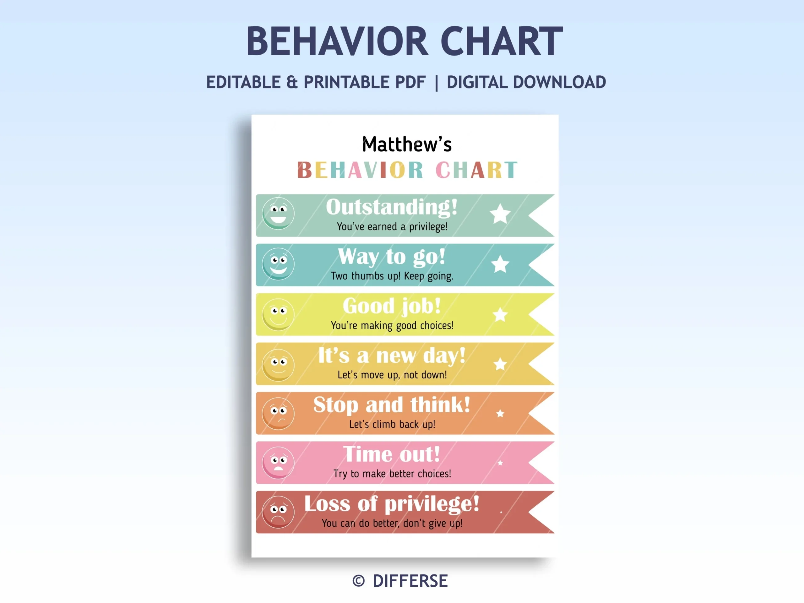 Editable Kids Behavior Chart Printable Children Behavior Ladder