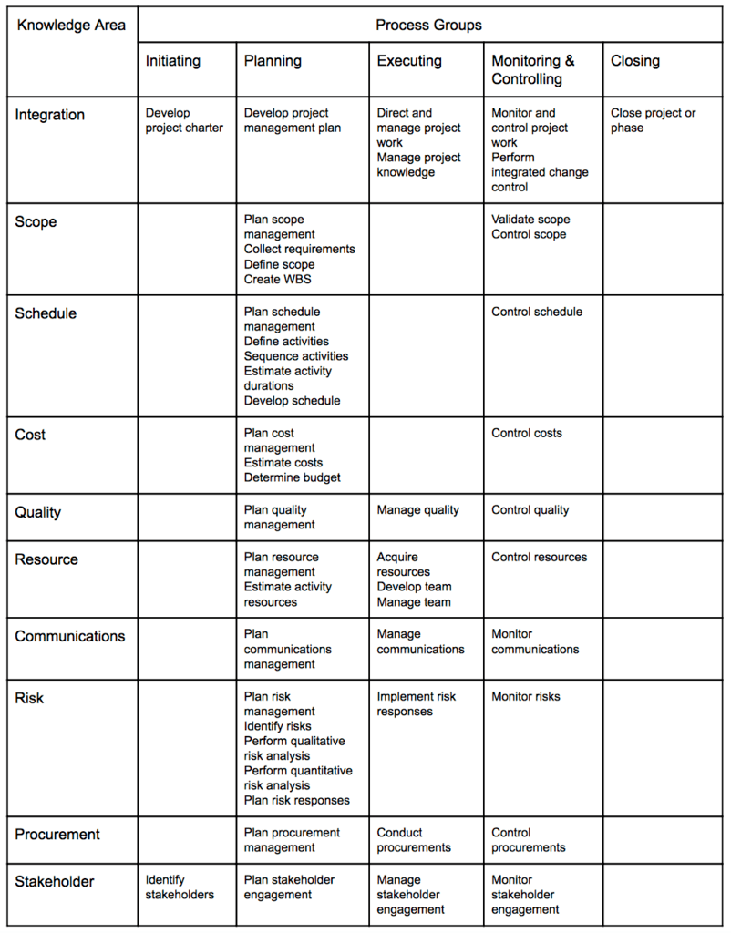 Pmbok 6th Edition Printable Chart