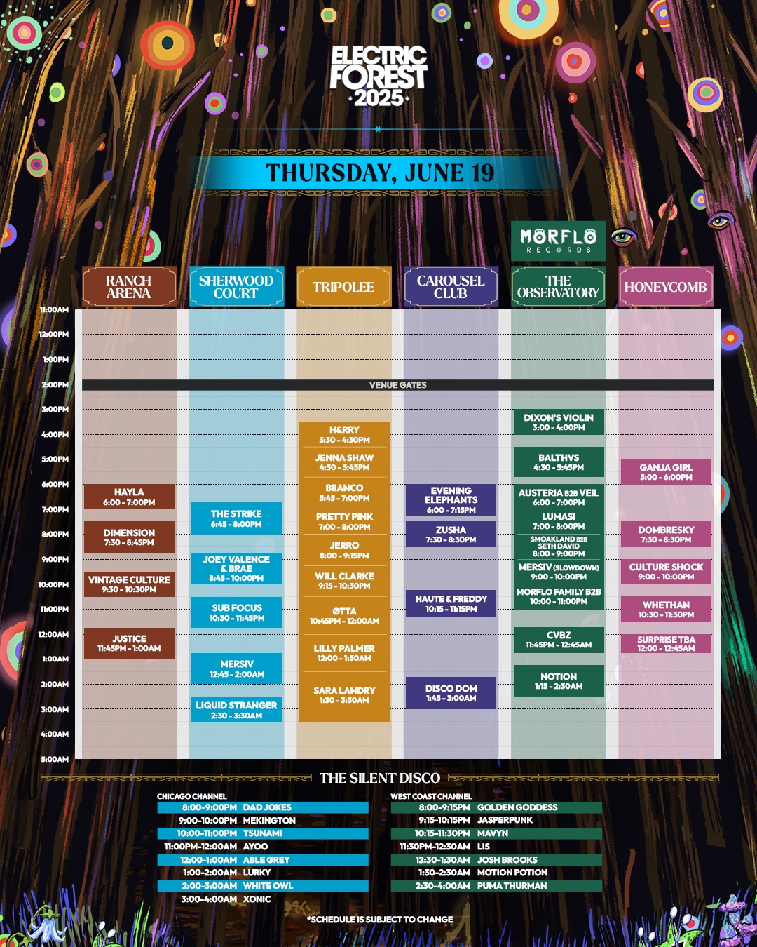 Don’t miss out on any of the amazing performances or activities – grab your printable Electric Forest schedule today and get ready for an unforgettable weekend in the forest!