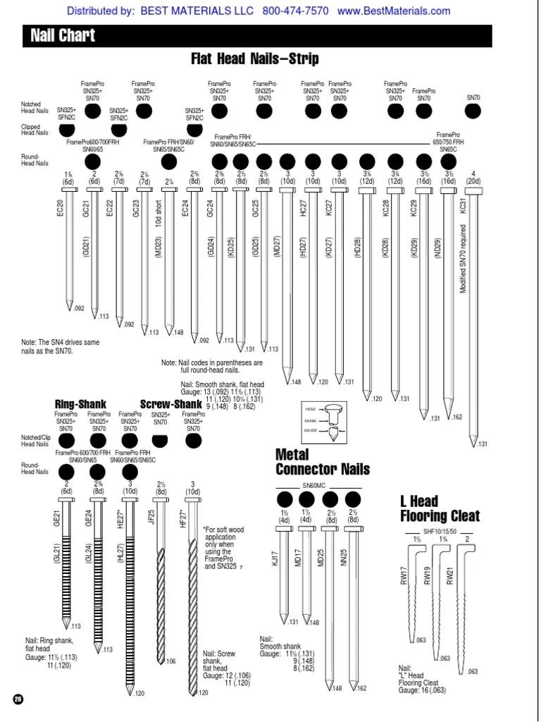 Senco Nails Chart PDF Manufactured Goods Building Materials