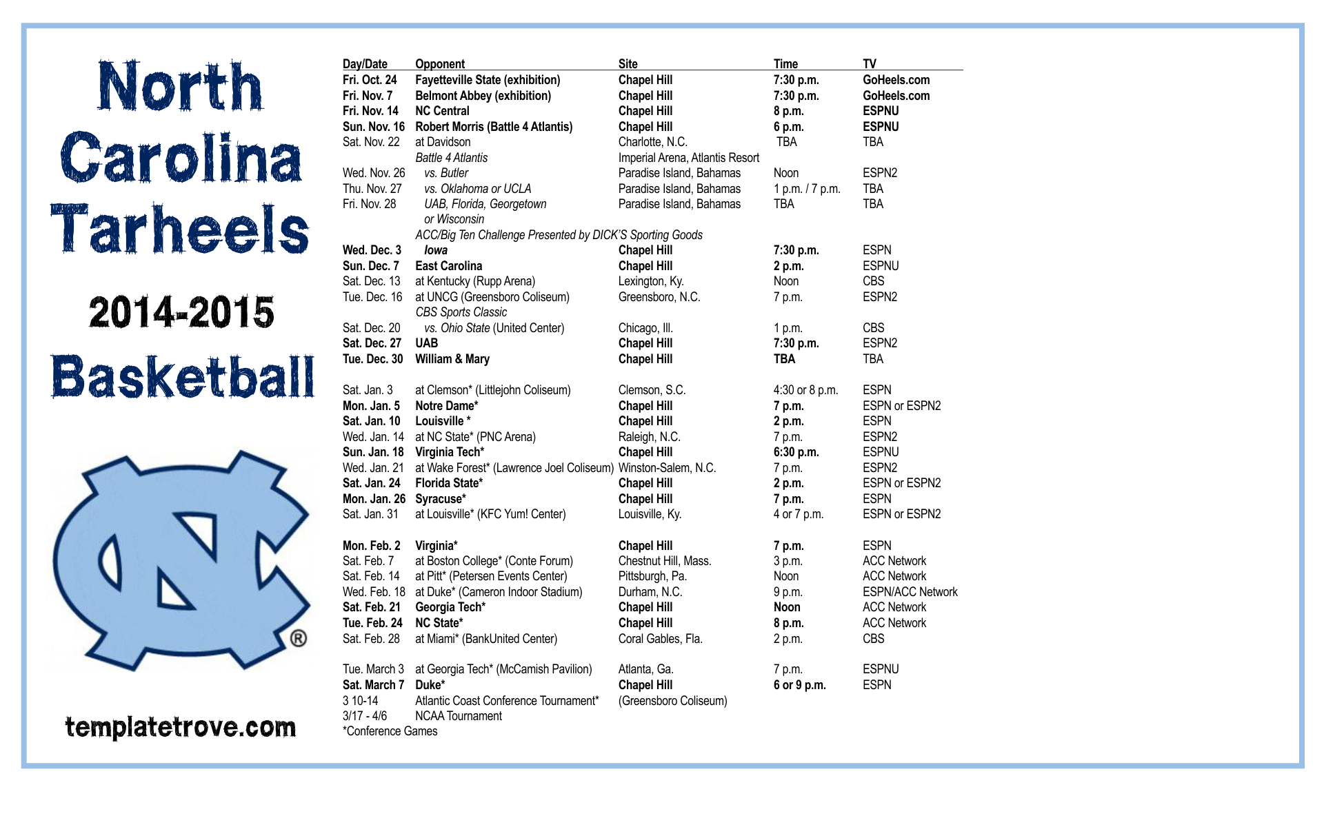 Unc Basketball Schedule 2024 Printable Printable Party Favors